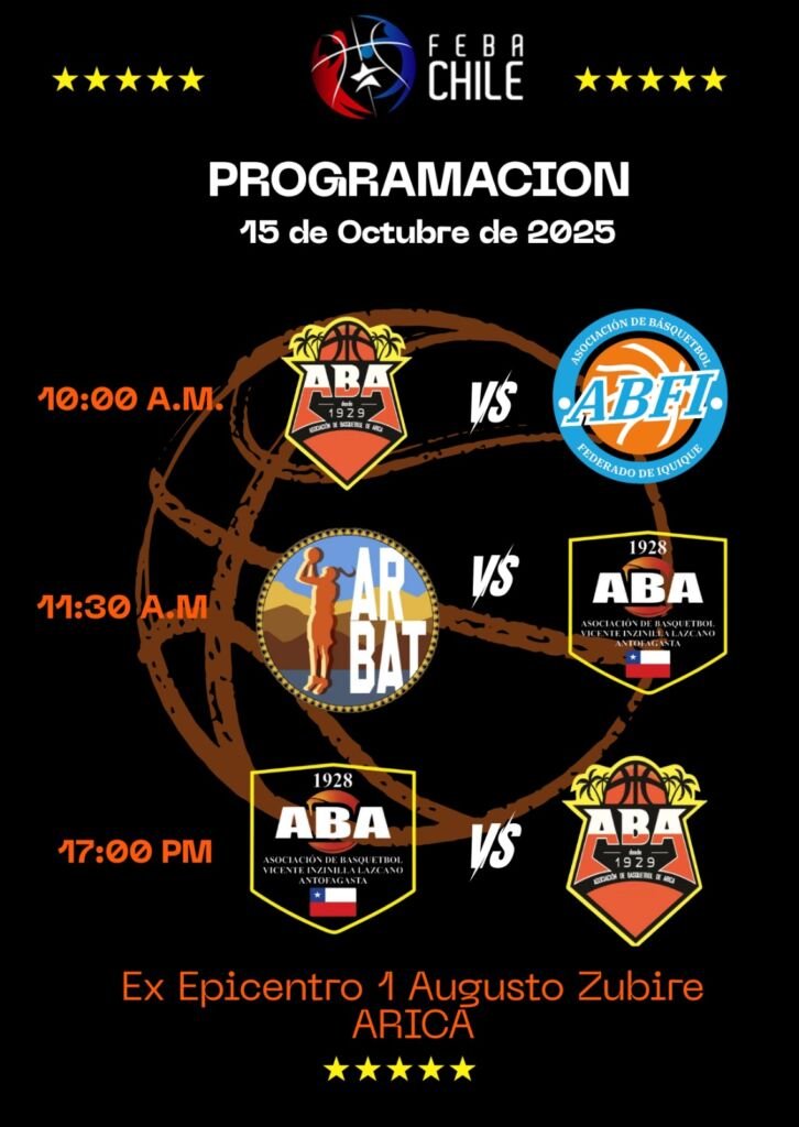 Este 15 de octubre de 2025, la ciudad de Arica será el epicentro del baloncesto femenino juvenil, con una intensa jornada del campeonato U15 Damas, bajo el marco de la FEBA Chile. El evento reunirá a destacadas asociaciones del norte del país, que competirán con todo el talento de sus futuras estrellas.